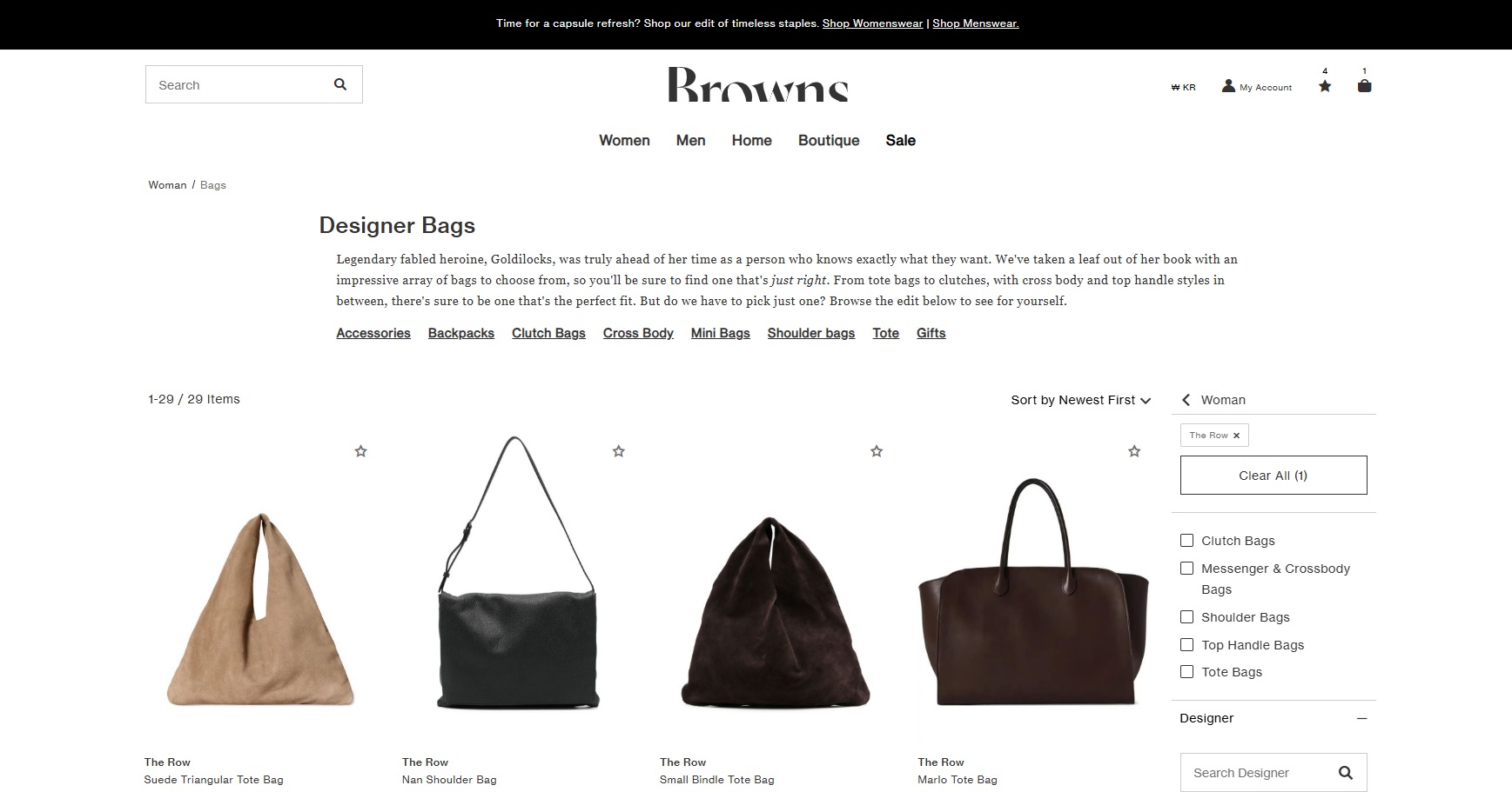 • 제가 개인적으로 좋아하는 직구 사이트 중 하나. 더로우 마고 백도 가끔 나와서 직구 가능하지만 워낙 고가 가방이라 세금 폭탄