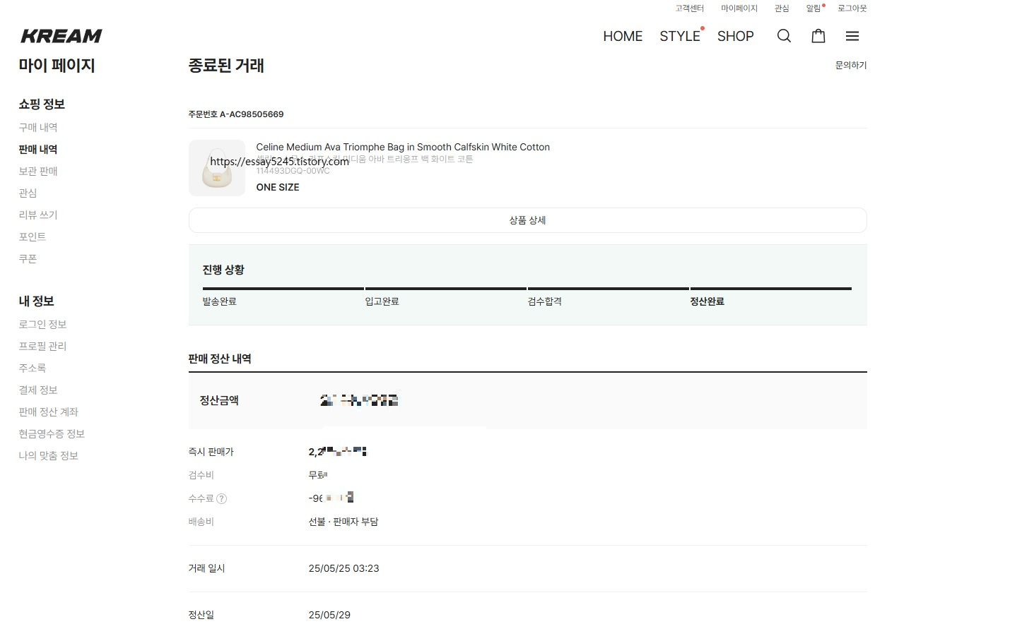 - 검수 정품 합격후 바로 다음날 정산 진행